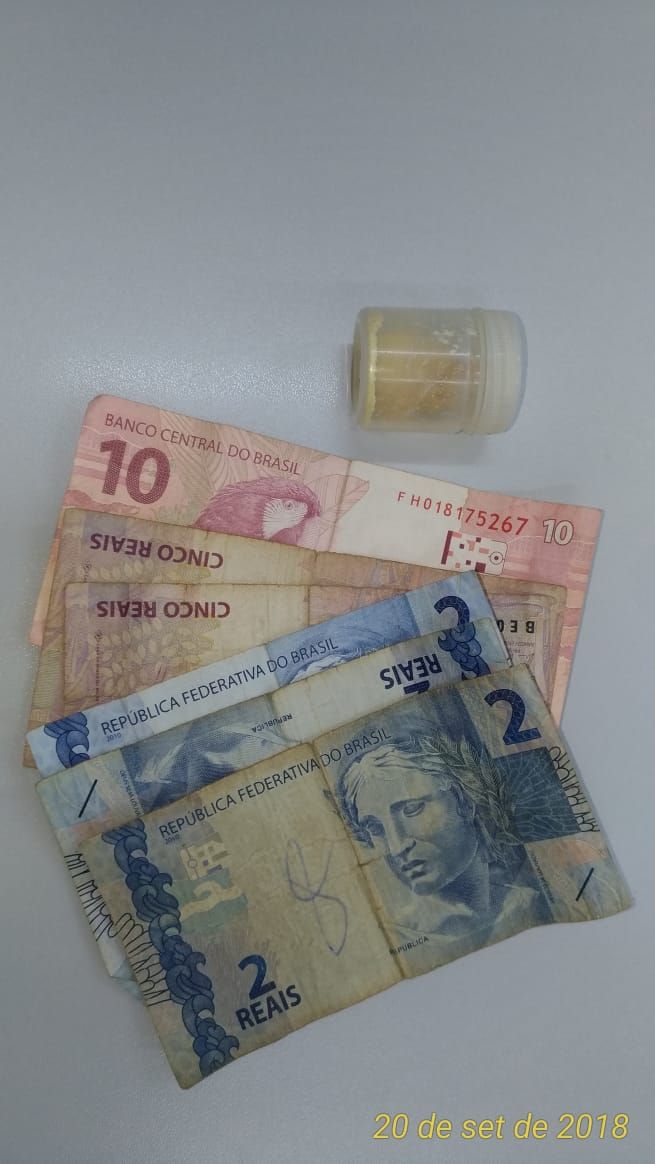 Com a suspeita, os investigadores apreenderam um frasco de plástico transparente contendo várias pedras de crack (3,0gramas) e mais R$26,00, fracionados em cédulas de menor valor.